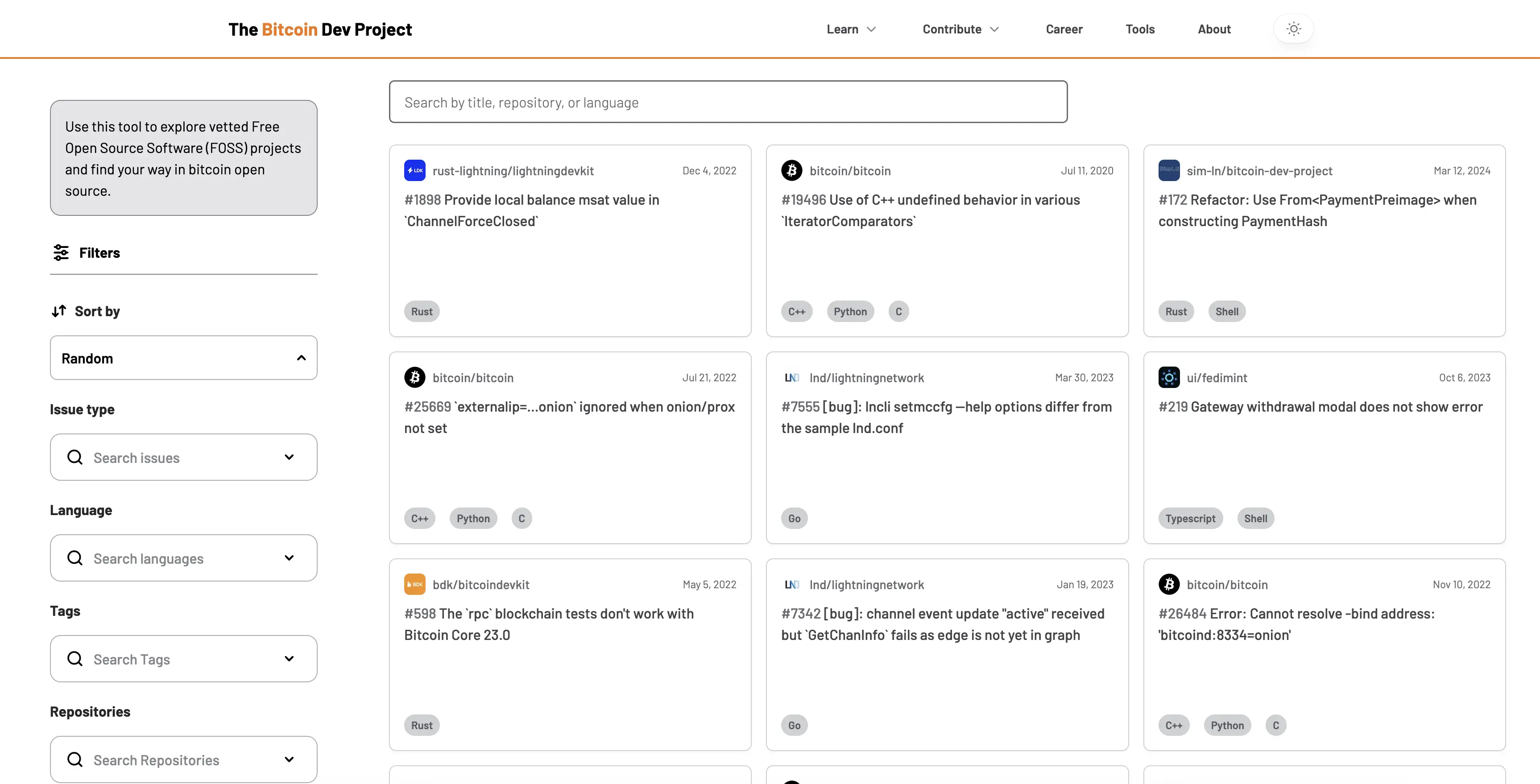 Explore tools crafted to support you in learning, building, and contributing to the Bitcoin ecosystem.
